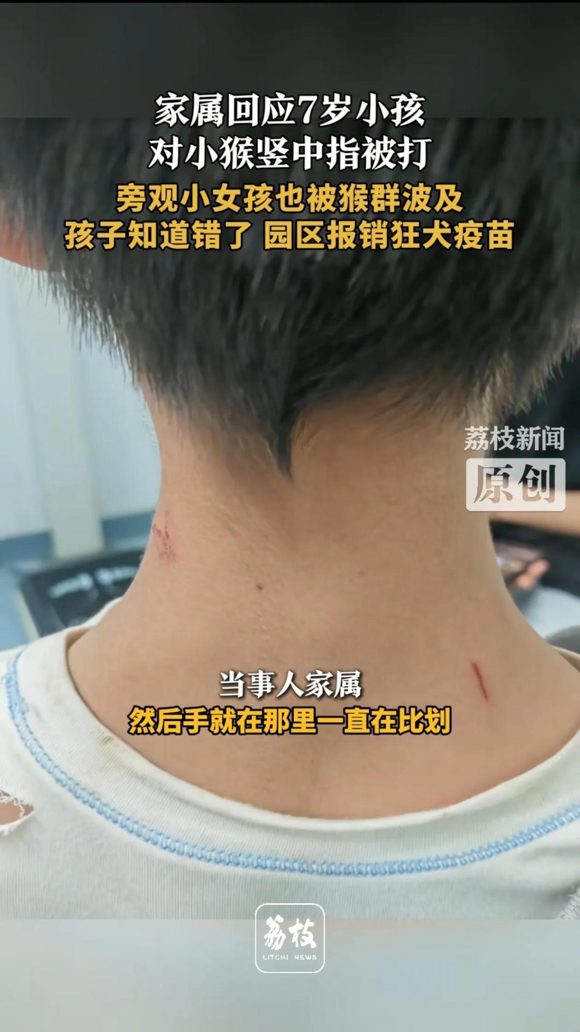 起因是這樣的,一個的7歲男孩因對著孩子豎中指,遭到了眾多猴子圍毆。