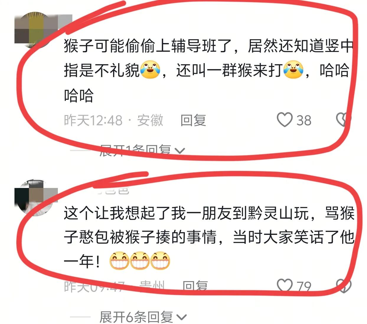 也有人說猴子可能上猿輔導了,居然知道豎中指不禮貌,還叫了一群孩子來打。