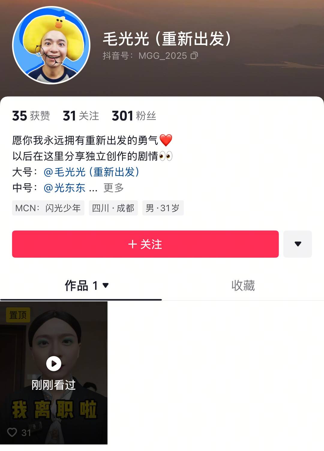 毛光光,抖音平臺(tái)知名內(nèi)容創(chuàng)作者,以反串表演和一人分飾多角而聞名。早在2018年7月底,便入駐抖音與現(xiàn)在的公司簽約,但真正走紅是在2020年2月發(fā)布的“柜姐”系列視頻。