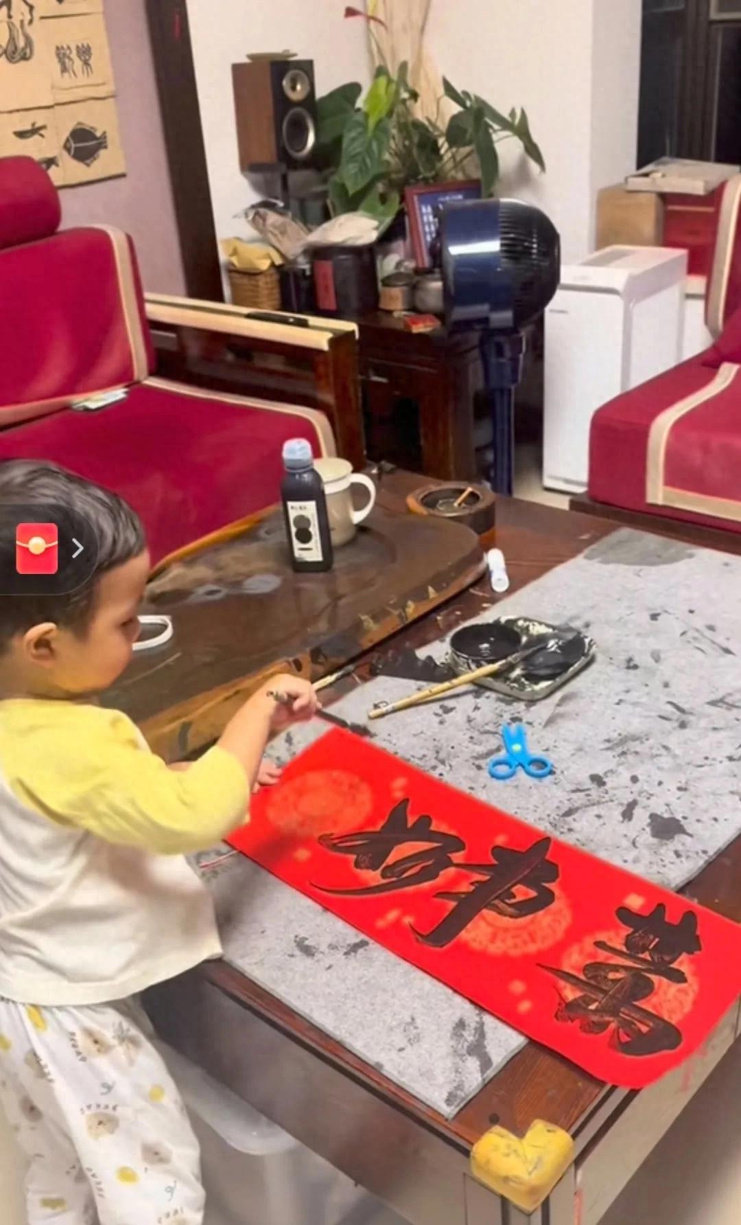 抖音上有個視頻火了,一個2歲11個月大的小萌娃正握著毛筆,認真地在紙上寫著對聯。那專注的小模樣,讓人忍不住多看幾眼。