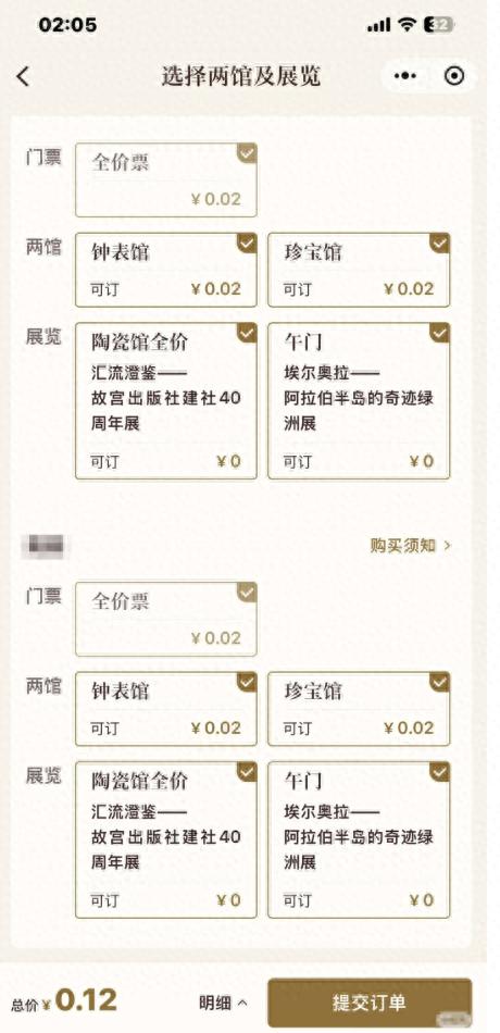 據權威媒體報道,7月22日凌晨兩點,陳先生(化名)迅速下單,用0.12元購買了兩個人的故宮門票——包括2張全價門票、2張鐘表館和2張珍寶館的門票,其他展覽門票甚至完全免費。
