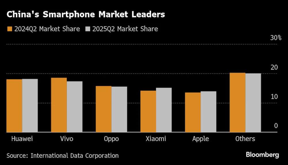 IDC的數據顯示,這家硬件巨頭在6月季度保持了約18%的市場份額,而vivo和OPPO等其他主要競爭對手的份額則大幅下滑。這家深圳的設備制造商比其競爭對手表現出更強的韌性,盡管中國市場的總出貨量下降了4%,至6900萬臺。