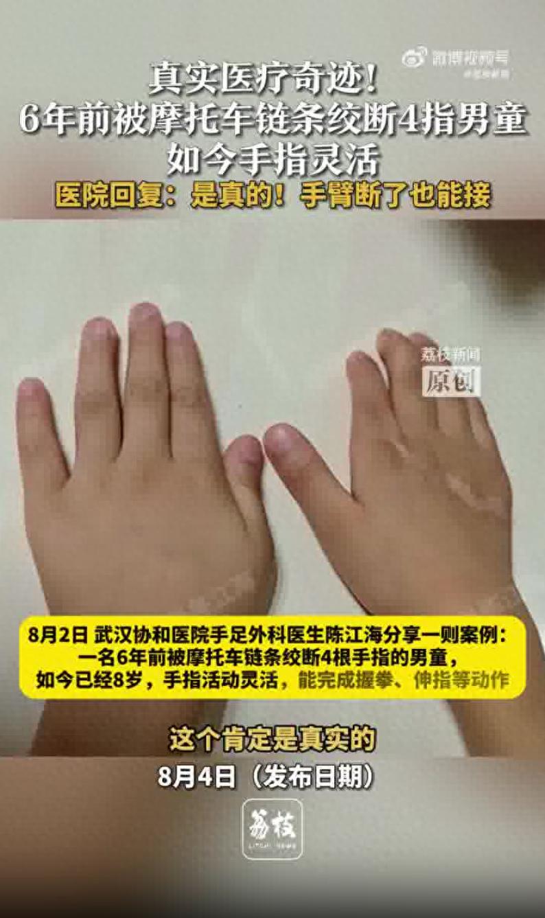 娃他爹媽趕緊抱著娃往武漢協(xié)和醫(yī)院跑,心里頭急得跟啥似的。陳江海醫(yī)生接的手,人家是那醫(yī)院的老手藝人,用了個不用植皮的土法子,三下五除二就給娃接上了。娃現(xiàn)在長成八歲的小后生,手指頭靈活得跟沒事兒人一樣,寫字、玩玩具、吃飯啥都行,娃自個兒還整天蹦蹦跳跳的,可歡實了。