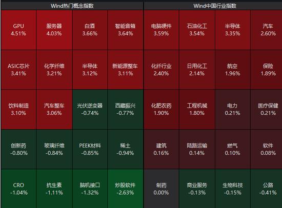 盤面上,半導體產業鏈午后震蕩走強;汽車板塊持續活躍,上汽集團、松原安全、模塑科技等多股漲停。消費電子、白酒等板塊漲幅居前;金融科技、創新藥、稀土板塊等板塊跌幅居前。