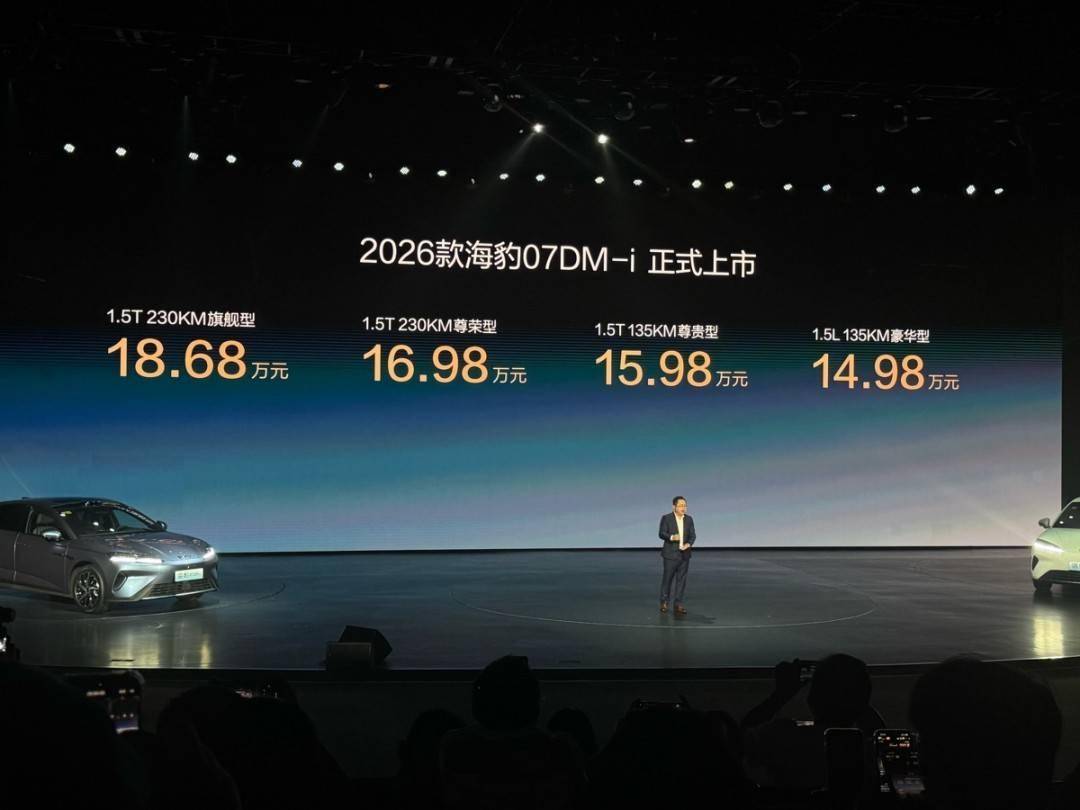 9月15日消息,2026款海豹07DM-i正式上市,新車共推出4個(gè)配置版本,官方指導(dǎo)價(jià)格為14.98萬(wàn)元-18.68萬(wàn)元。新車新增云輦-C 智能阻尼車身控制系統(tǒng)、TSC高速爆胎穩(wěn)定控制系統(tǒng)及天神之眼 B- 輔助駕駛激光版(DiPilot300)等硬核配置,為用戶帶來(lái)高品質(zhì)出行新體驗(yàn)。