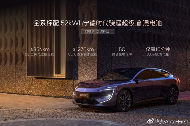 動(dòng)力方面,阿維塔12四激光版提供純電與增程雙動(dòng)力,純電動(dòng)后驅(qū)版CLTC續(xù)航里程可達(dá)755公里;增程版全系標(biāo)配52千瓦時(shí)容量度寧德時(shí)代驍遙超級(jí)增·混電池,CLTC純電續(xù)航里程356公里,綜合續(xù)航里程更突破1270公里。