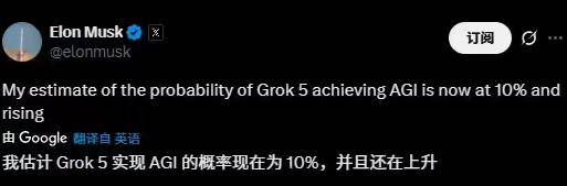 10月21日消息,特斯拉與SpaceX首席執行官埃隆·馬斯克在社交平臺上發布預測,稱其旗下人工智能公司xAI正在研發的Grok 5大型語言模型有10%的概率實現通用人工智能(AGI),且該概率呈持續上升趨勢。