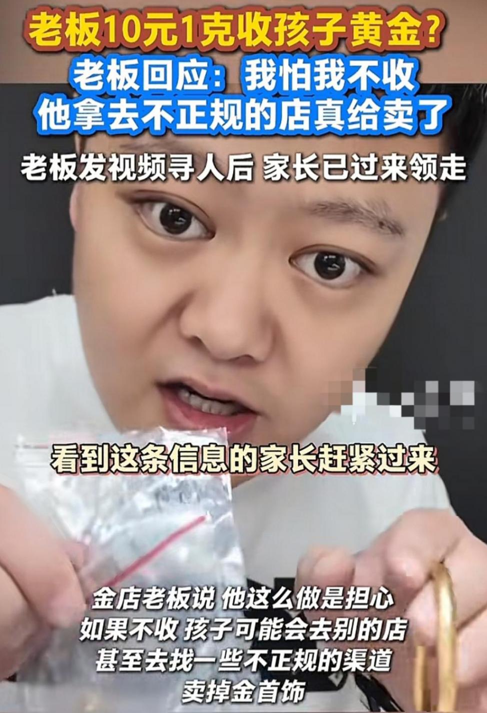 孩子走后,店主就尋思著,這黃金不能收,指定是誰家調皮孩子趁家長不注意,偷拿出來的,我的趕快發個視頻找找孩子的家長,把東西還回去。