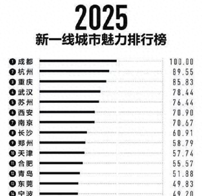 最近網(wǎng)上流傳著一份有關(guān)“新一線城市”的排名榜單,把15個(gè)城市按照名次排列出來,依次是成都、杭州、重慶、武漢、蘇州、西安、南京、長(zhǎng)沙、鄭州、天津、合肥、青島、東莞、寧波和佛山。看完整個(gè)名單之后就能察覺到每個(gè)城市都有自己的長(zhǎng)處,總體來看還是覺得比較合理的,但有些城市的排位卻讓人感到意外。